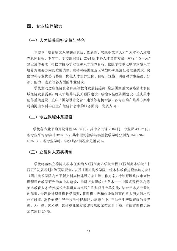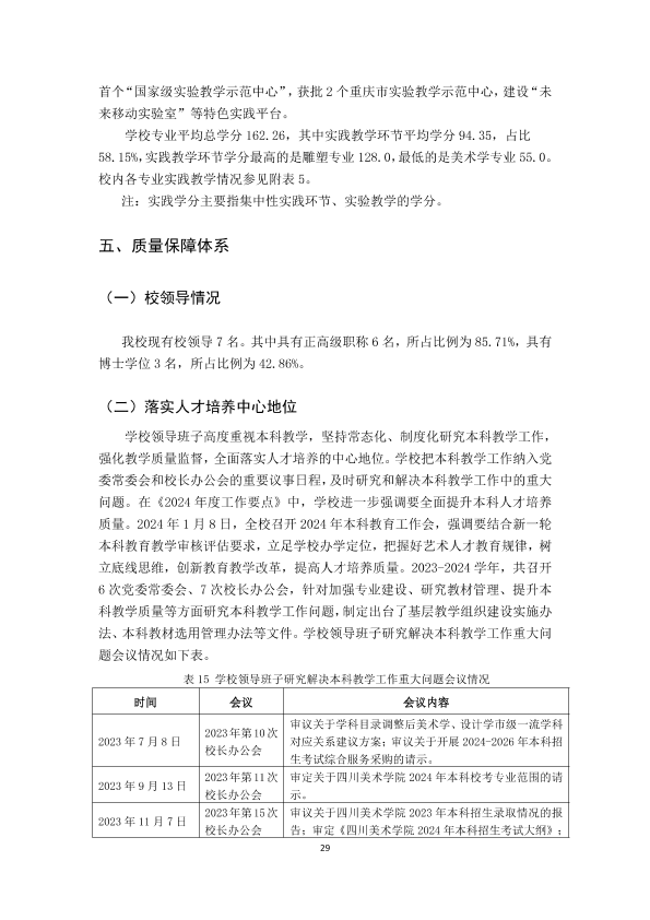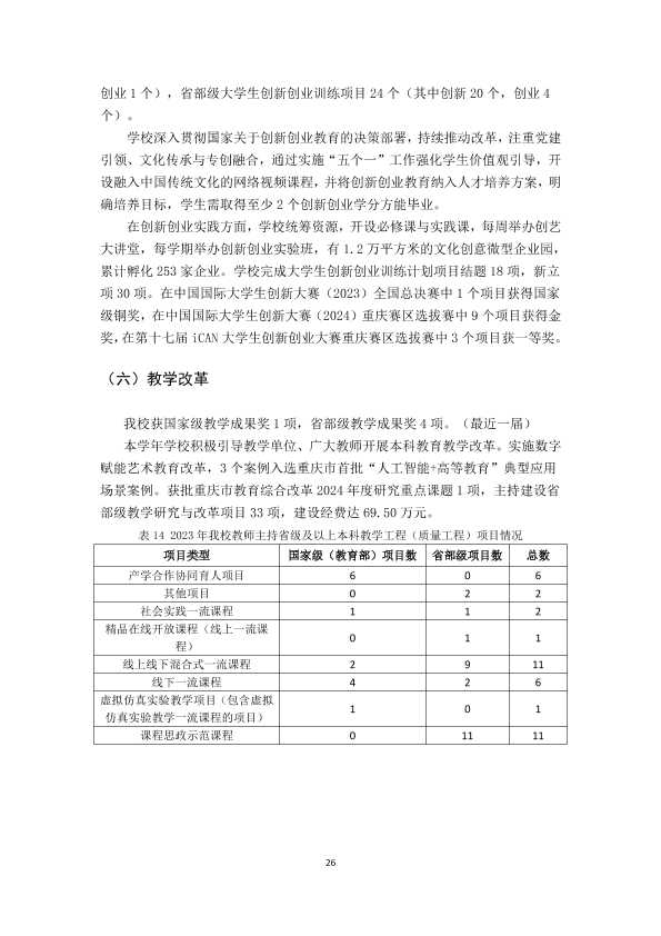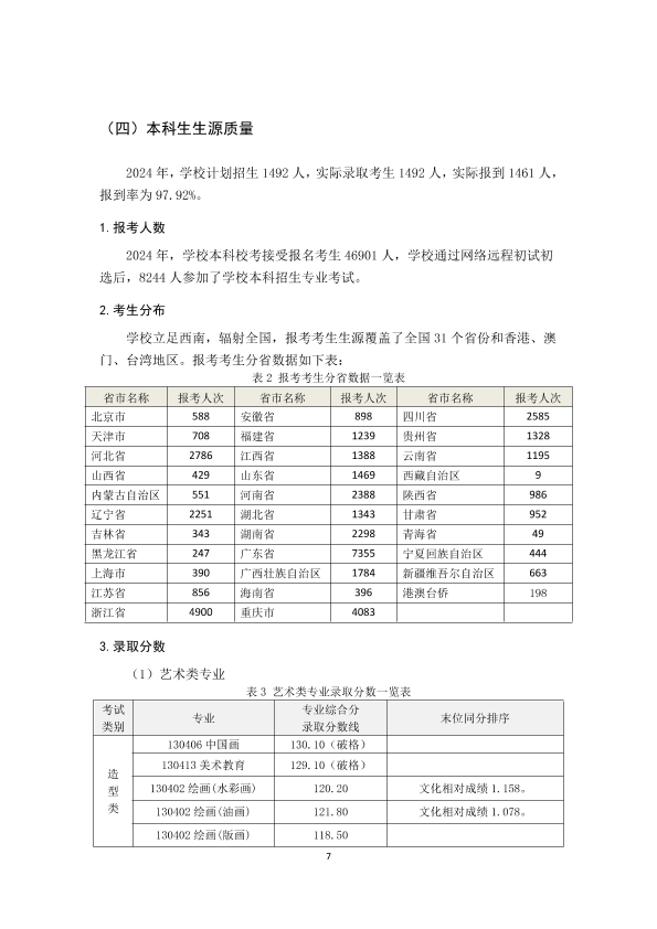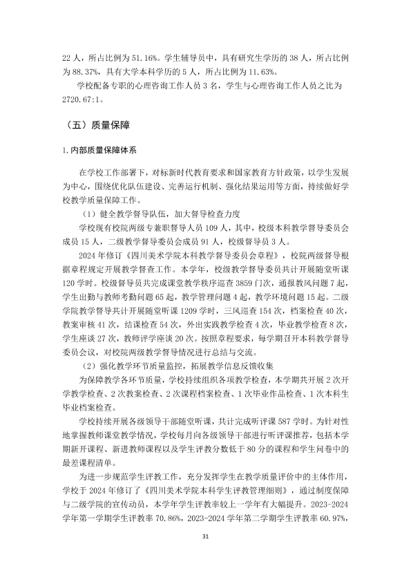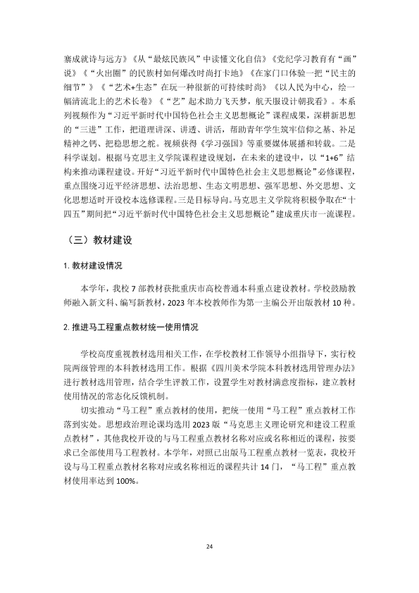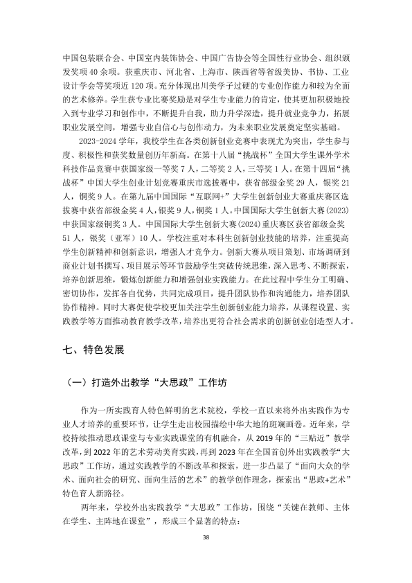 四川美术学院2023-2024学年本科教学质量报告