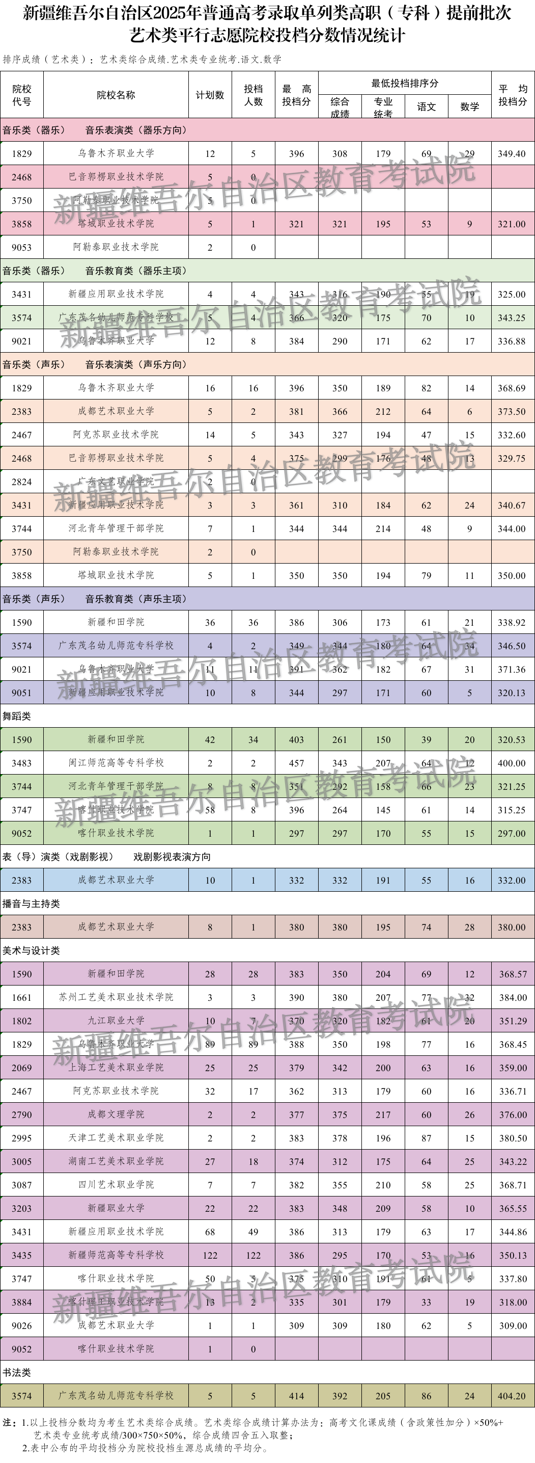 按照录取工作安排,自治区普通高校招生单列类高职(专科)提前批次艺术类院校(专业)投档录取工作于8月16日正式开始,新疆教育考试院根据投档原则向单列类高职(专科)提前批次艺术类在我区招生院校进行了投档,现将相关院校投档情况公布如下: